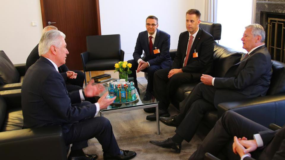 La reunión tuvo lugar en el despacho del presidente Gauck en la sede del parlamento alemán. Se emocionó visiblemente por la magnitud y el contenido de la información.